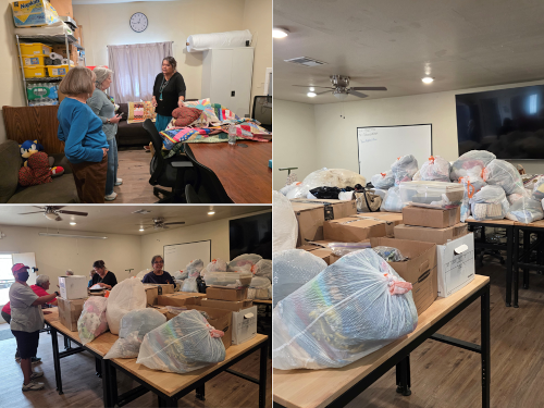 On Friday, September 19th, a dedicated team led by Frank and Billie Chambers—including Mary Ann Amos, Marie Gonzales, and Judi Haines—delivered a generous donation of fabrics, notions, and sewing machines to the Tooh Haltsoi Community Center in Sheep Springs Station, located on the Navajo Nation.