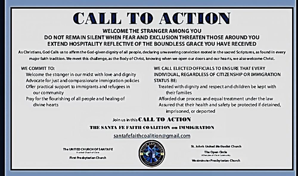 FPC along with four other churches in the Faith Coalition felt compelled by the teachings in the scriptures to speak out in an ad run in the Santa Fe New Mexican on August 27th and also in Pasa Tiempo. We advocate for just policies and offer practical support to immigrants. We also presented to the Mayor’s Committee on Immigration. See the full ad and presentation.